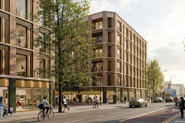 January 27, 2026 A developer has submitted proposals for two large HMO schemes in the centre of West Ealing. The combined projects, if approved, would deliver over 200 rooms for shared living occupation in a move which appears driven by an increasing crackdown on HMOs in houses in residential parts of the borough. One plan (254723FUL) has been submitted for the demolition of the existing 1930s building at 105–113 Broadway and its replacement with a six-storey mixed-use scheme combining ground-floor commercial space and 129 House in Multiple Occupation (HMO) rooms above. The application, lodged by UK Lux One SPV and designed by MDLR Architects, represents the most significant HMO-led developments brought forward in Ealing in recent years. The scheme includes commercial units at street level, with the upper floors providing HMO accommodation, communal kitchens and dining areas, laundry facilities, cycle storage and refuse provision. The site occupies a prominent position on The Broadway (A4020), directly opposite a cluster of locally listed Edwardian buildings and adjacent to St James’ Avenue. The existing structure—an Art Deco-influenced three-storey block with retail at ground level and former office or residential space above—would be fully demolished to make way for the new development. The proposed six-storey building would sit between the lower-rise frontage of The Broadway and the taller emerging developments to the east. The design team describes the scheme as a contemporary addition intended to improve the street scene along St James’ Avenue and Canberra Road, activate ground-floor frontages and create a more coherent urban edge to the town centre. The existing building’s Art Deco features, including white tiles, fluted detailing and a stepped parapet, would be lost, although the site is neither listed nor within a conservation area.