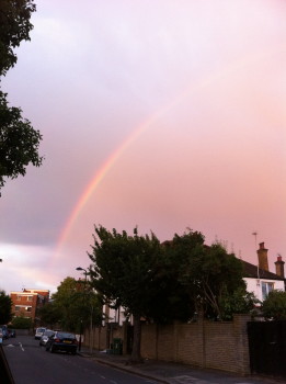 This strange seasonal weather of hot temperatures and torrential downpours has a slight bonus. Yesterday west London saw a rather amazing rainbow. It was captured (near Ealing Common) by budding photographer, 12-year-old Priya Suji, who has shared her photos with us. Rather nice too don't you think?