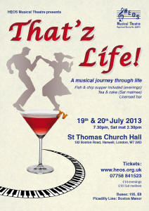 That'z Life! is a celebration of life through song. The fantastic cast will have you singing and dancing in your seats as they take you on a journey from childhood through to adulthood and finally into those twilight years. The soundtrack includes songs from Company, Hair, Slice of Saturday Night, Fiddler, All Shook Up, Sweeney Todd to and other favourite musicals. It promises to be full of laughs, energy and fun. Your ticket will include a fish and chip supper, or afternoon tea at the Saturday matinee. A licensed bar will also be available. Tickets are available from: Online: www.heos.org.uk (booking fee applies) When: