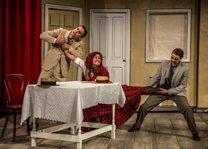 Tom Stoppard’s comic farce, ‘On the Razzle’, is the playhouse performance for the Questors Academy Student Group 66 in Questors Theatre, on Ealing’s Mattock Lane. The origins of this play come from Sir John Oxenford’s 1835 one-act farce, ‘A Day Well Spent’. Some may recognise that Oxenford’s version was adapted into Austrian Johann Nestroy’s 1842 ‘Einen Jux will er sich machen’ (‘He’s out for a fling’) and ‘The Merchant of Yonkers’ – and later ‘The Matchmaker’ — by Thornton Wilder. Or perhaps you’ve seen Broadway hit ‘Hello, Dolly!’? Stoppard adapts the Nestroy version, but adds his own touch with sexual innuendo and puns. Putting on a Stoppard play also has great meaning for the Questors Theatre, which was originally one of the first venues to perform Stoppard’s ‘Guildenstern and Rosencrantz’. The money-minded pompous Herr Zangler, played by Rory Greenfield started the play strong with his believable English-speaking foreigner’s accent. He appears on stage confused and often distracted by his own thoughts, needing his subordinates to humorously correct his phrases. Zangler plans to propose in Vienna to Madame Knorr, a rich and widowed Venetian cloth boutique owner, while denying the hand of his niece, Marie, to love-struck young dandy Sounders. He arranges that Marie is entrusted to her aunt instead and employs witty servant Melchior to keep an eye on them. In Zangler’s words, “I woke up this morning feeling like a new man – so I got one!” Meanwhile, his own wholesale business is to be tended to by his sales assistant, Christopher, and apprentice, Weinberl, who decide to go ‘on the razzle’ to Vienna for a night to remember. While evading their boss, Christopher concocts a sham marriage to stranger Mrs. Fischer to please her friend, Madame Knorr, and involves Weinberl in the growing deception. With the help of two tartan cloaks, two pairs of military boots and the unknown go-between Melchior who recognises no one but Zangler, there’s plenty that can and does go wrong. There’s mistaken identities, double entrendres and even a trap door. The play has some real moments of brilliance. Christopher, played by Emily Newns, portrays the visionary enthusiasm of a philosopher in his observations which make him a gripping energy. Emma Armstrong Hawkins plays the gawky Weinberl, intent on excitement and adventure. Both actresses translate well the character’s relationship with each other and it’s an incremental guilty pleasure to see their antics. Most vocally clear was actor Kassa Hailu, who was able to carry the self-assuredness that Melchior’s character demanded, making his overtures over Zangler even the more funny – the comic reversal of Melchior interviewing Zangler for the position of his boss worked well. As part of the accredited Questors Academy acting and performance two-year course, this summer playhouse production serves as the showcase following 12 weeks of rehearsal, and 2 years of theoretical and practical study. With such importance put on one show, how did Director and Tutor, Richard Gallagher, choose his play? “Everyone has got to have a decent part. This ensemble play is set in Vienna, which affords us the ‘breeches’ role – women playing men –from Viennese comedy. With actress Felicity Kendal playing male Christopher in the original production staged at the National Theatre, it made it easier for me to decide to have females switching gender, and it also suited the casting.” While cast initially had problems with getting used to the style and “timing head turns and punching in with lines”, the complex technical staging of the play was made simpler with rotating set pieces designed by Carla Evans. The lighting was elegant and well-timed by lighting director and recent winner of the 2013 Association of British Theatre Technicians (ABTT) ‘Technician of the Year’ award, Ben Sandford. Student actors will now have the opportunity to act as part of the member productions, though some have already been accepted into drama schools. It was a privilege to see Student Group 66 perform their final year’s playhouse production. Call me biased for having completed the same course a year ago, but it only helps me understand how polished the play was and how much dedication was given to their characters. Slick and entertaining. Meena Toor @journomeena