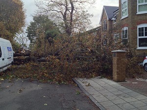 The much heralded storm hit the Ealing area early this morning (Monday 28th October) with winds of up to 70mph. London Ambulance Service say a tree fell onto a van on Gunnersbury Avenue, W5 just before 6.40am. An ambulance crew and responder in a car attended and treated a man in his 50s, who was conscious. Shortly after this incident another man was hurt in Southall. A 29-year-old was hit by a tree near the junction of Norwood Road and King Street just before 6.45am. He was conscious and attended by an ambulance crew and a responder in a car and treated for head, chest and foot injuries before being taken to Ealing Hospital. The weather has caused chaos throughout the area which has been widely reported on social media. Various main roads (including Gunnersbury Avenue, top of Northfields Avenue, Argyle Road) were closed due to falling trees, buses diverted and trains cancelled. Twitter has been filled with images of trees down throughout the local area: This one near Hanwell station from @catherine2009